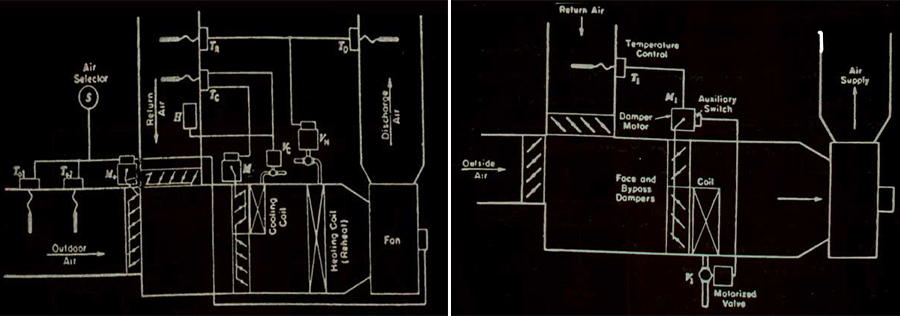 2. در نوع دیگری از کنترل مرکزی، هوای تازه و برگشتی توسط ترموستاتها مدیریت میشود :
