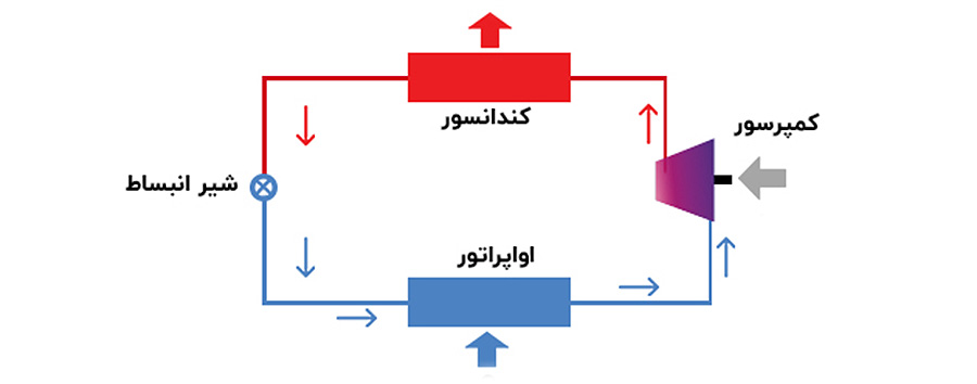 • شیر انبساط : این قطعه جریان مبرد را کنترل میکند و فشار آن را کاهش میدهد تا در مرحله بعدی، یعنی تبخیر، بتواند مقدار بیشتری گرما جذب کند.