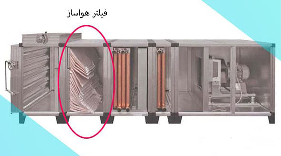 محل نصب این نوع فیلتر معمولاً بین محفظه اختلاط (Mixing Box) و بخش کویلها است تا قبل از ورود هوا به قسمت گرمایش یا سرمایش، ذرات معلق ریزتر حذف شوند.