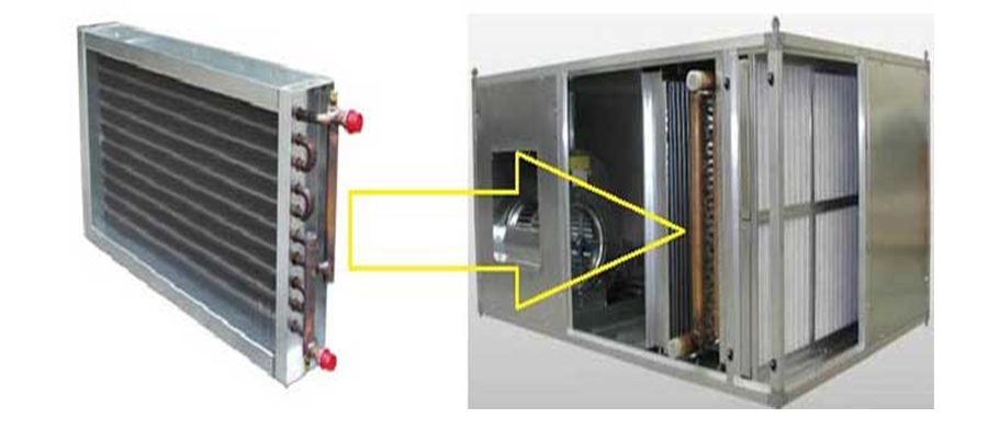 در قسمت گرمایش، سیالی مانند بخار یا آب گرم به داخل لولههای کویل تزریق میشود. عبور جریان هوا از روی پرههای این کویل باعث انتقال حرارت از سیال گرم به هوا میشود و بدین ترتیب، دمای هوا افزایش یافته و برای تأمین گرمایش فضاهای مختلف ساختمان آماده میشود. کیفیت طراحی فینها، دمای سیال ورودی و دبی جریان هوا سه عامل اساسی در راندمان این بخش هستند.